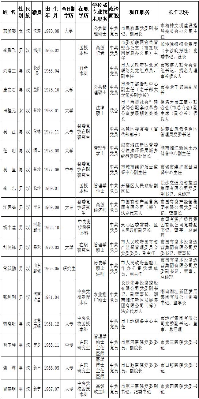| 中共长沙市委管理干部任前公示公告 |